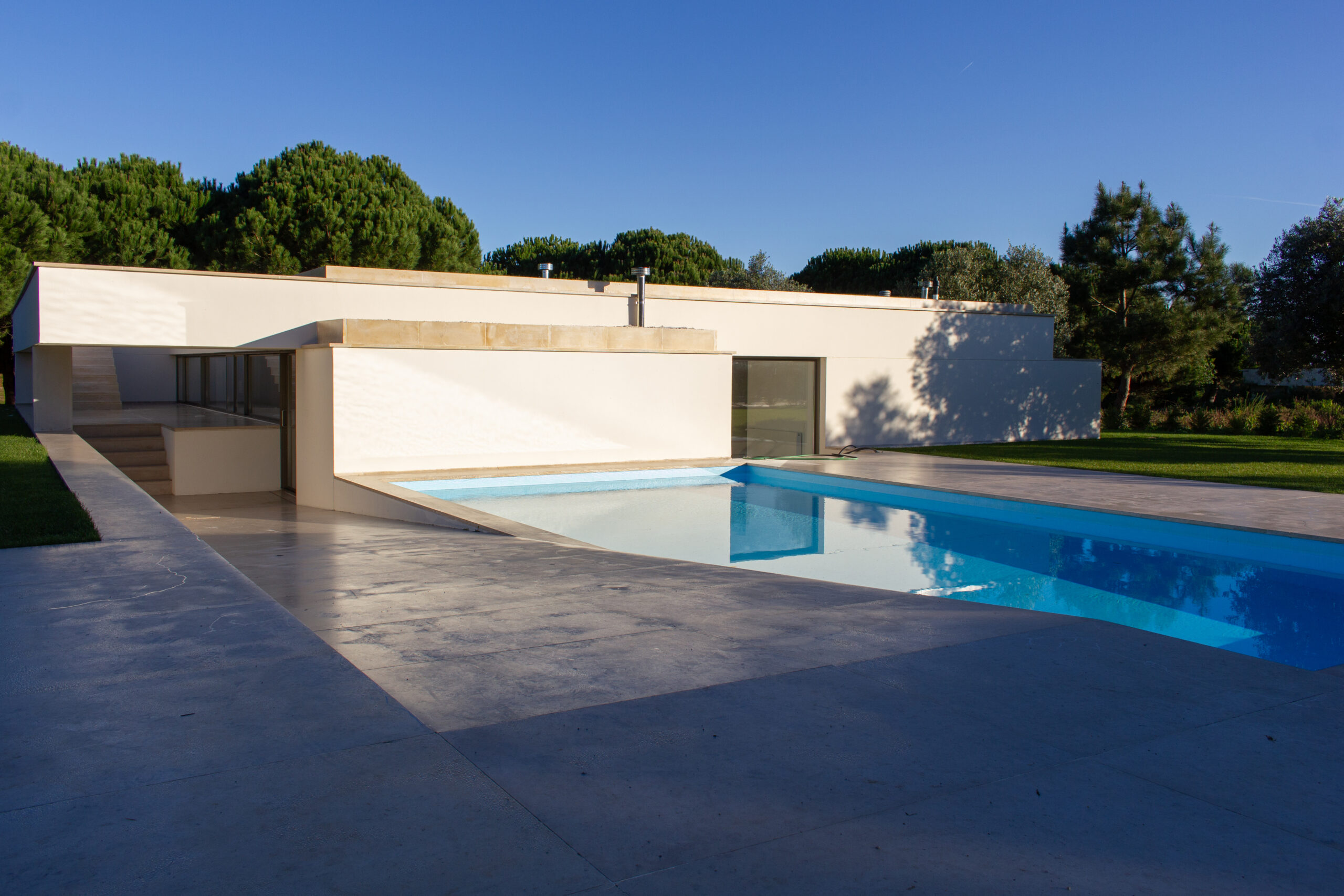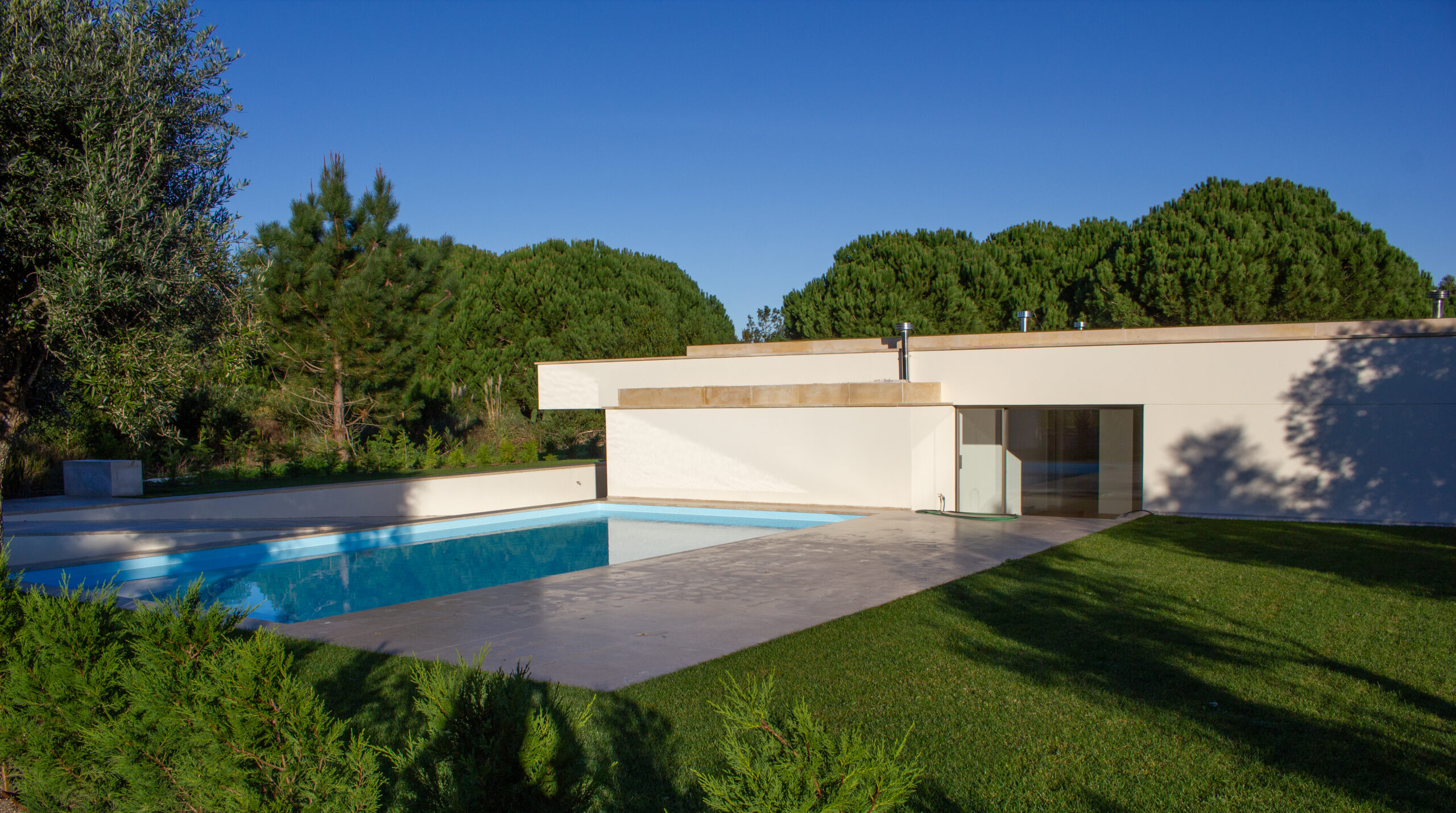 Designed by Nuno Brandão Costa, this project consists of seven T4 villas, of which four were completed, and two remain unbuilt. Situated along Rua da Lagoa in Bom Sucesso, Óbidos, the design embraces a distinctive spatial interplay between living and functional areas, emphasizing architectural clarity, integration with the landscape, and controlled openness.