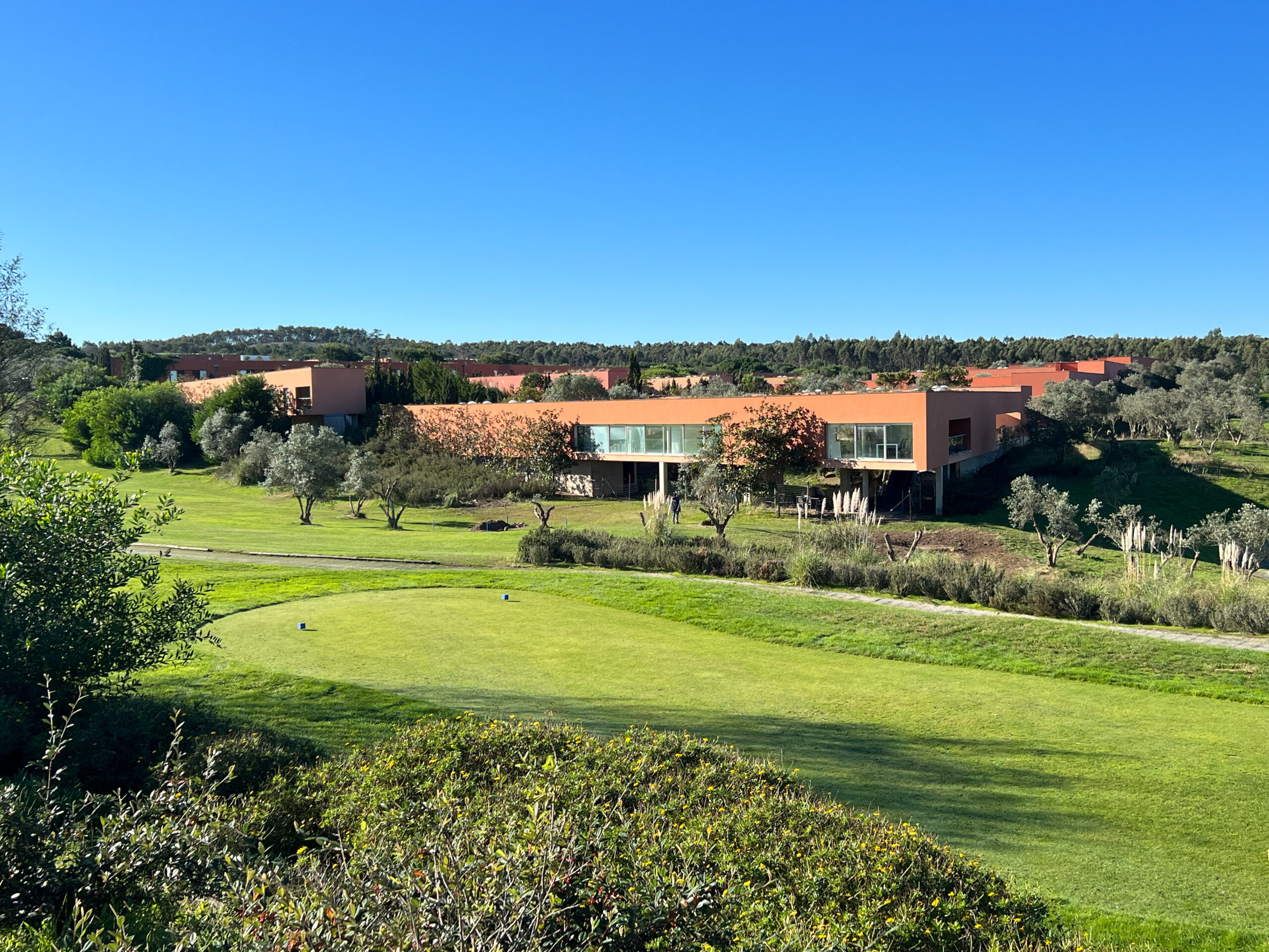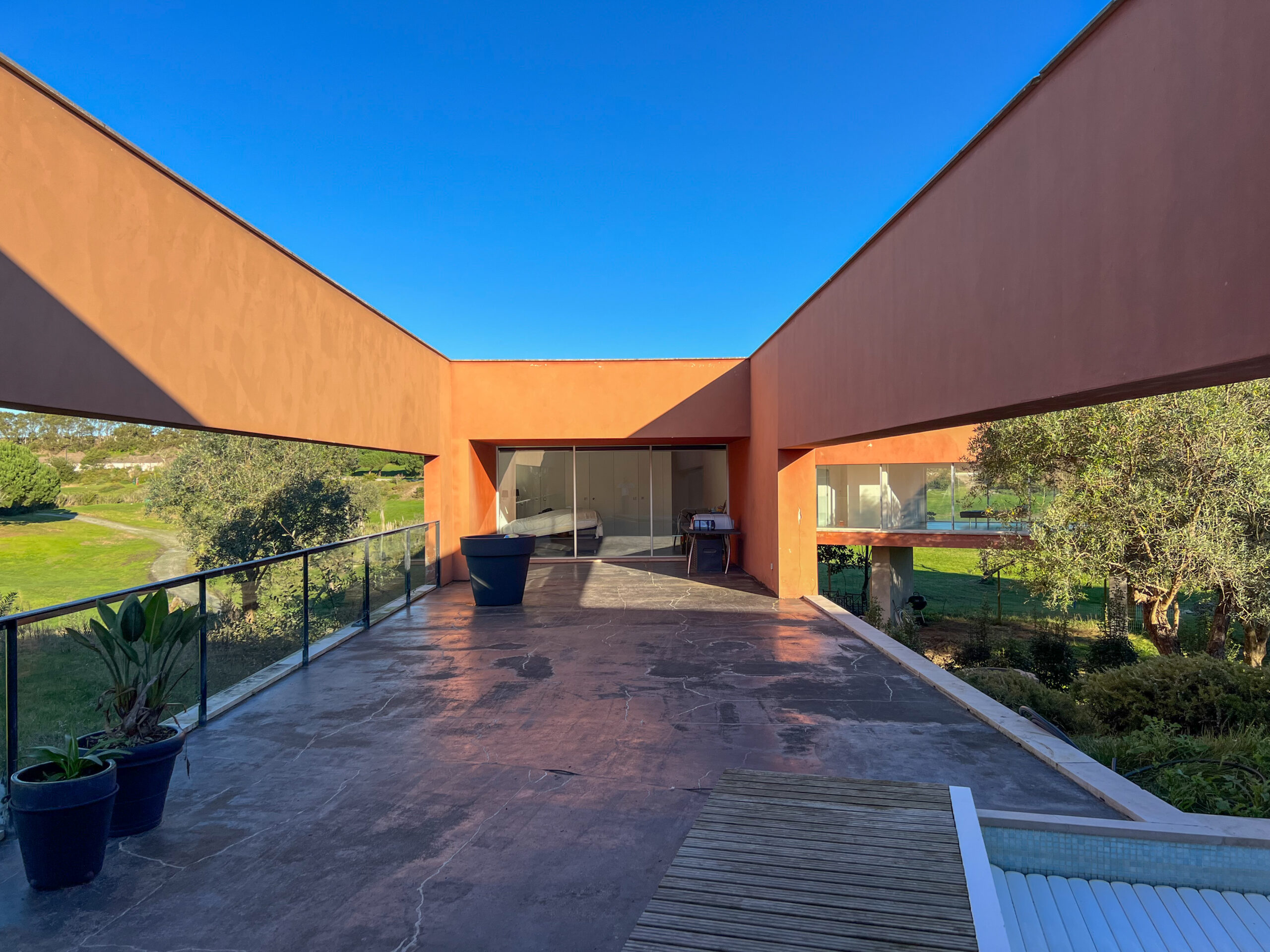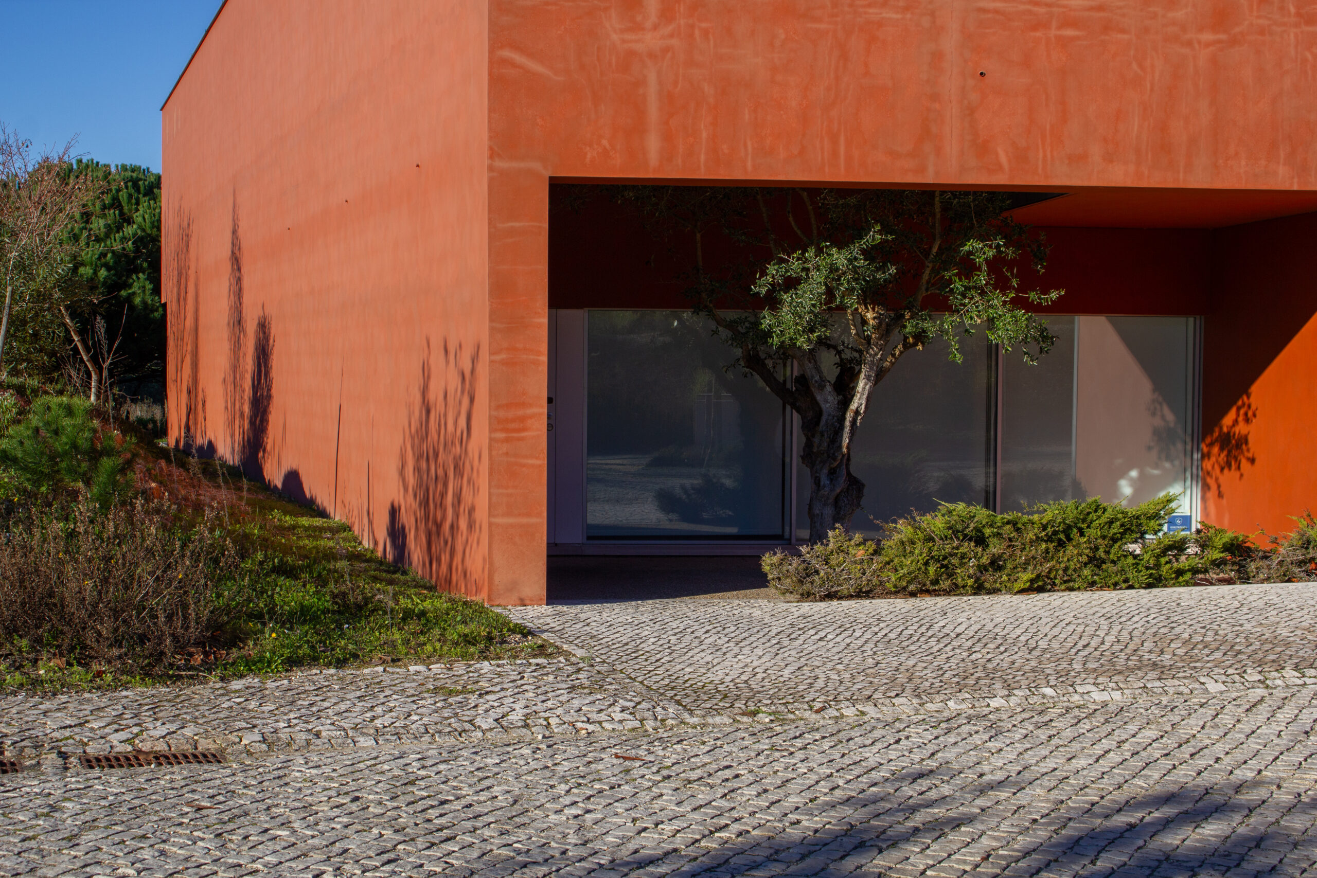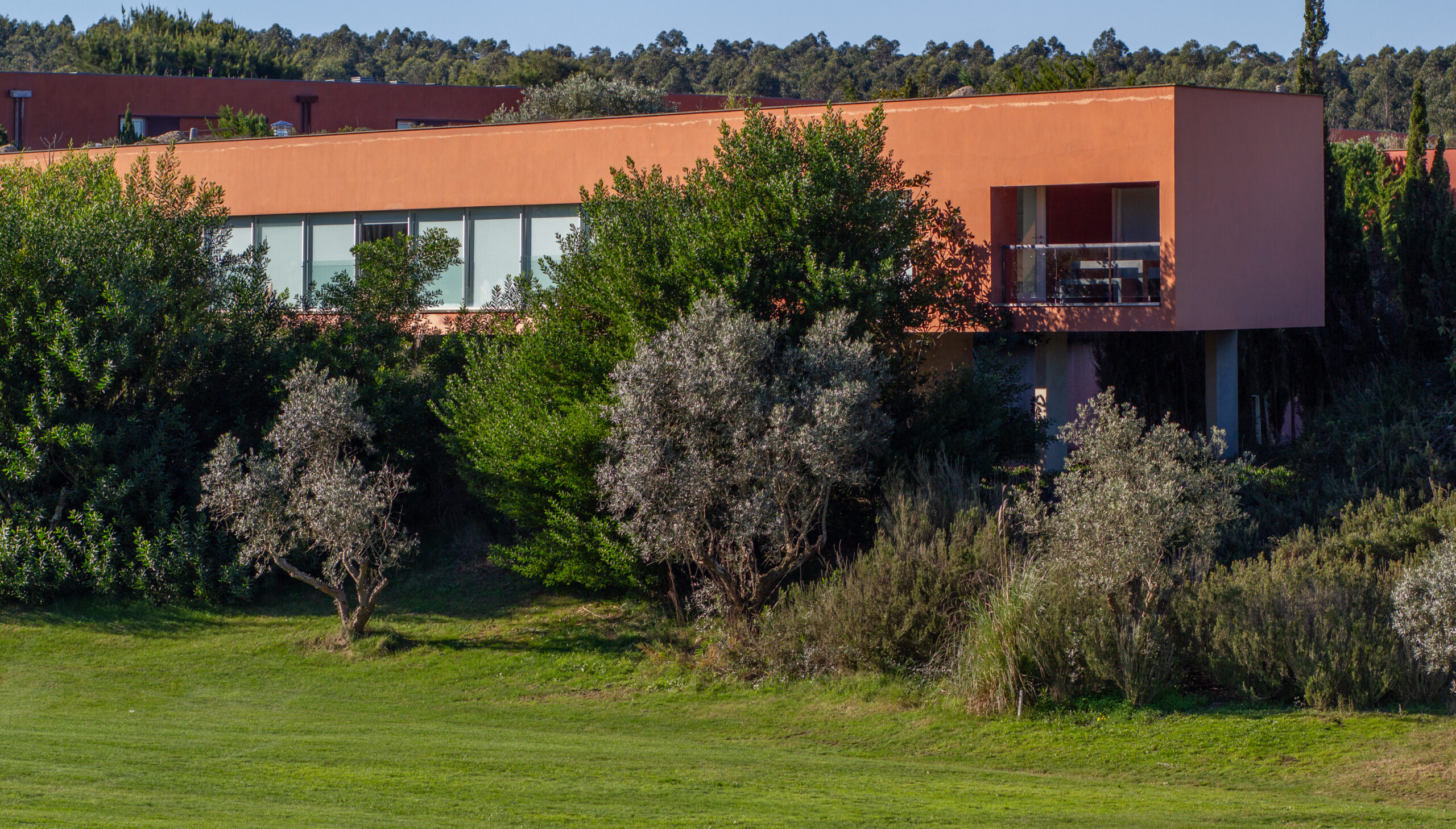 Originally envisioned in white, these villas instead became known for their striking red façades, a defining feature that gives them a strong architectural presence. Positioned along the golf course, overlooking holes 12 and 13, the houses blend harmoniously with centuries-old olive trees and the surrounding terrain. Unlike conventional layouts that place dwellings at the center of plots, Carrilho da Graça positioned his houses along the periphery, allowing for expansive courtyards that serve as the heart of each home. This design ensures privacy while fostering a sense of openness and connection to nature.