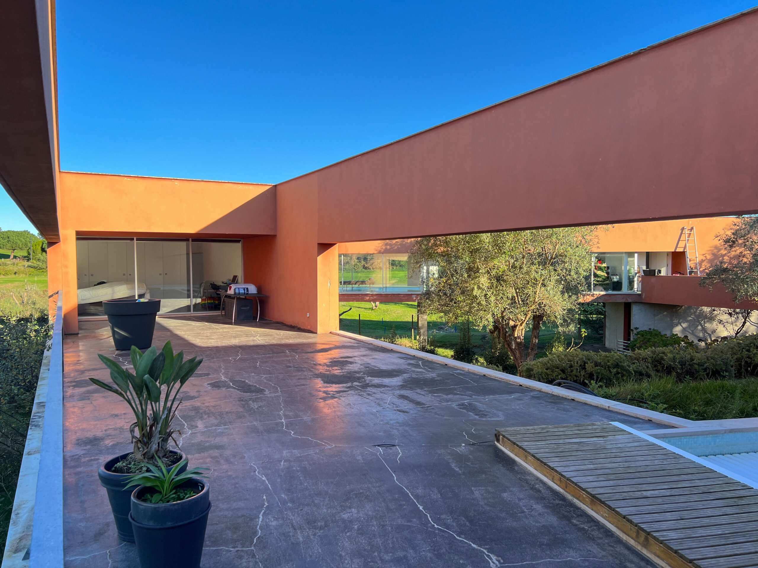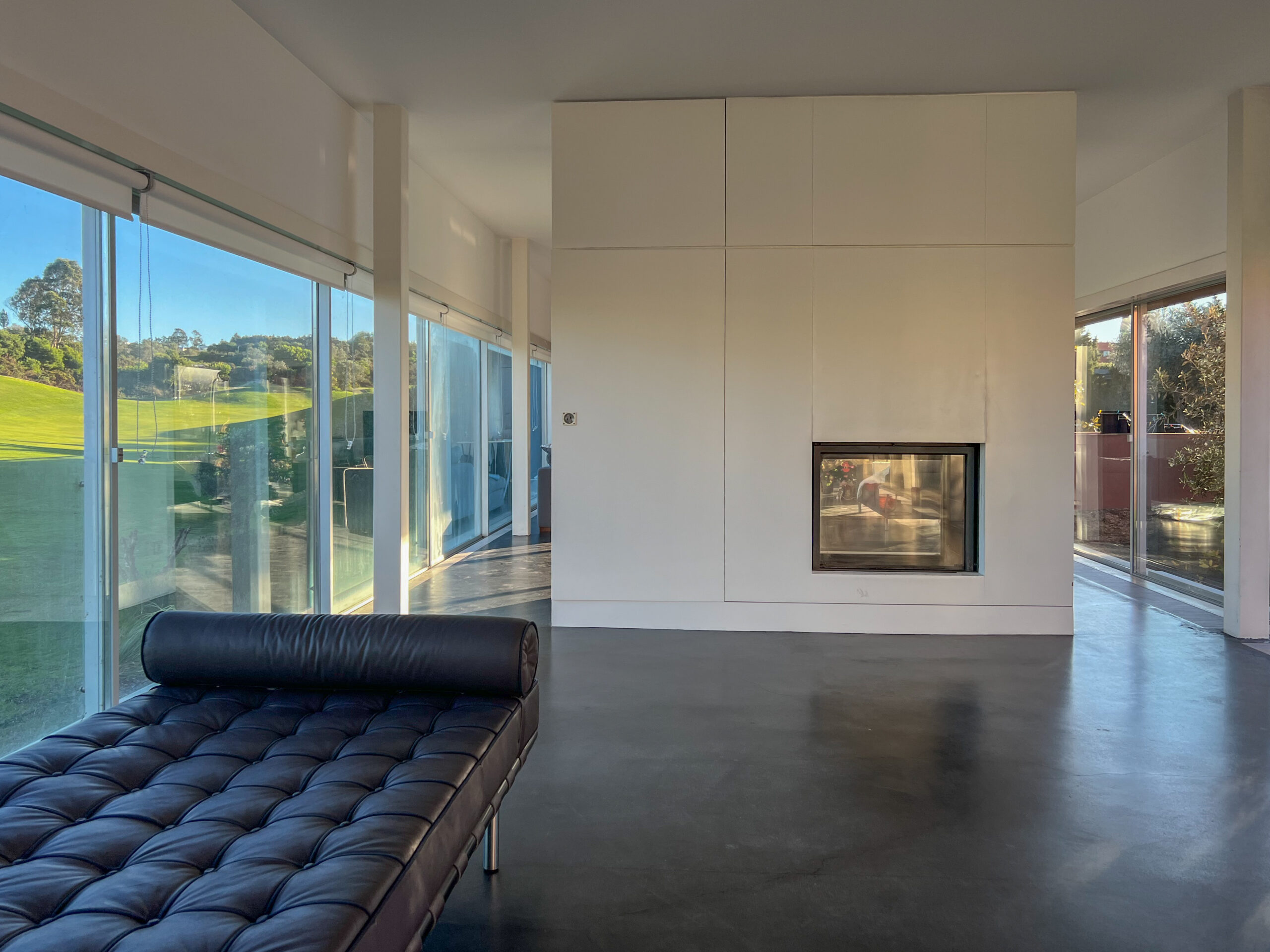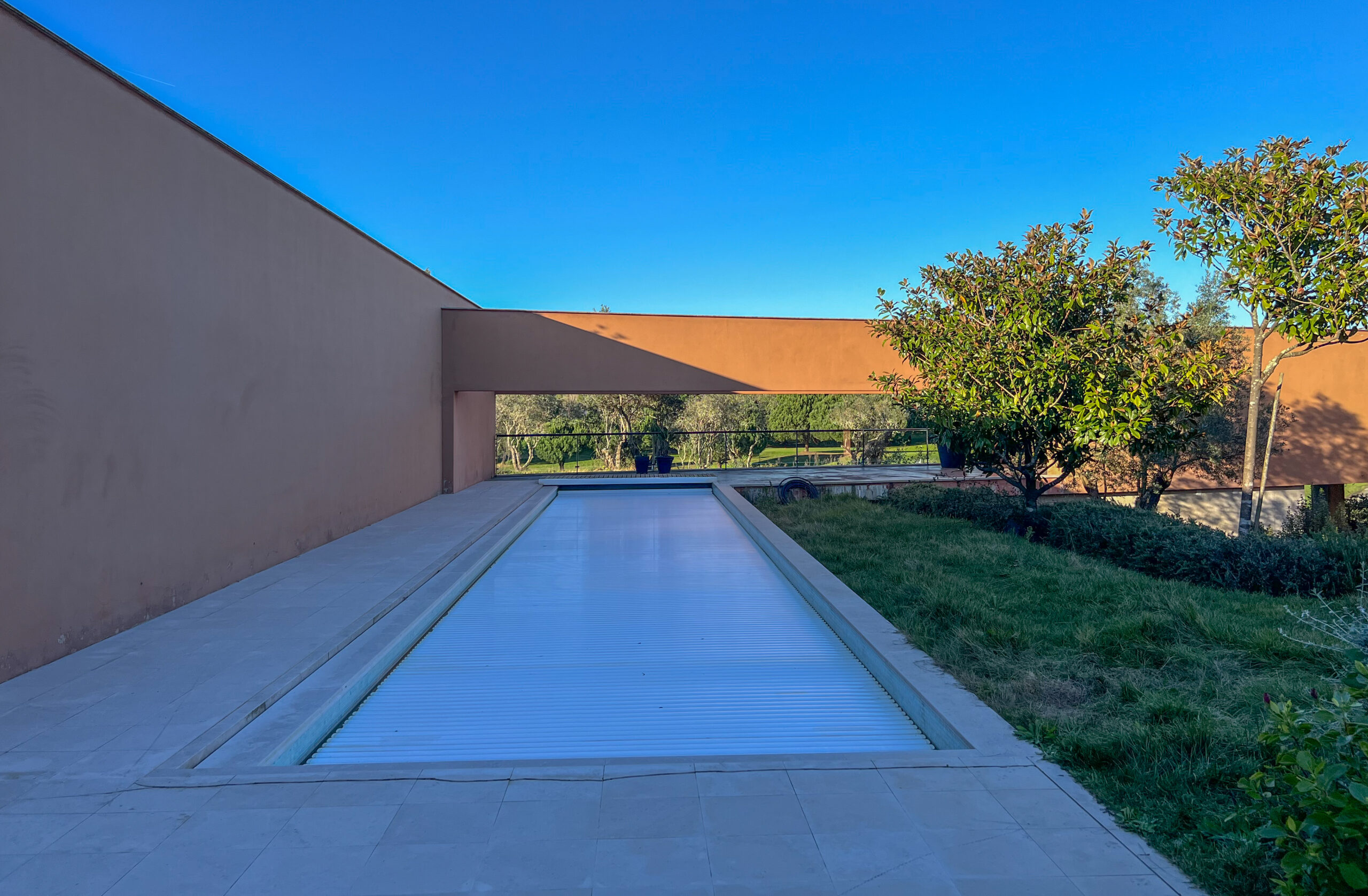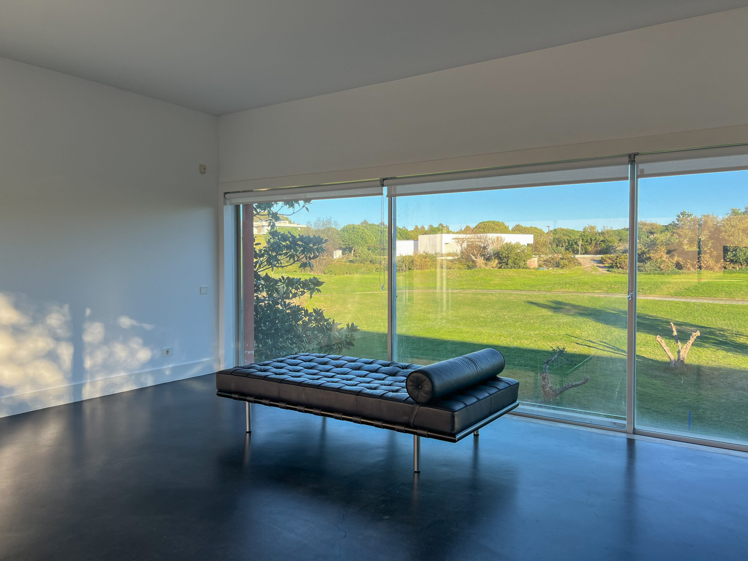 Originally envisioned in white, these villas instead became known for their striking red façades, a defining feature that gives them a strong architectural presence. Positioned along the golf course, overlooking holes 12 and 13, the houses blend harmoniously with centuries-old olive trees and the surrounding terrain. Unlike conventional layouts that place dwellings at the center of plots, Carrilho da Graça positioned his houses along the periphery, allowing for expansive courtyards that serve as the heart of each home. This design ensures privacy while fostering a sense of openness and connection to nature.