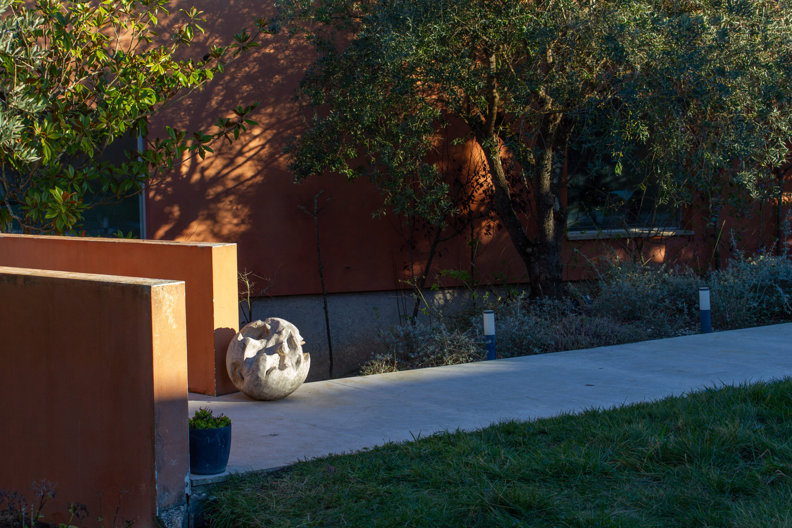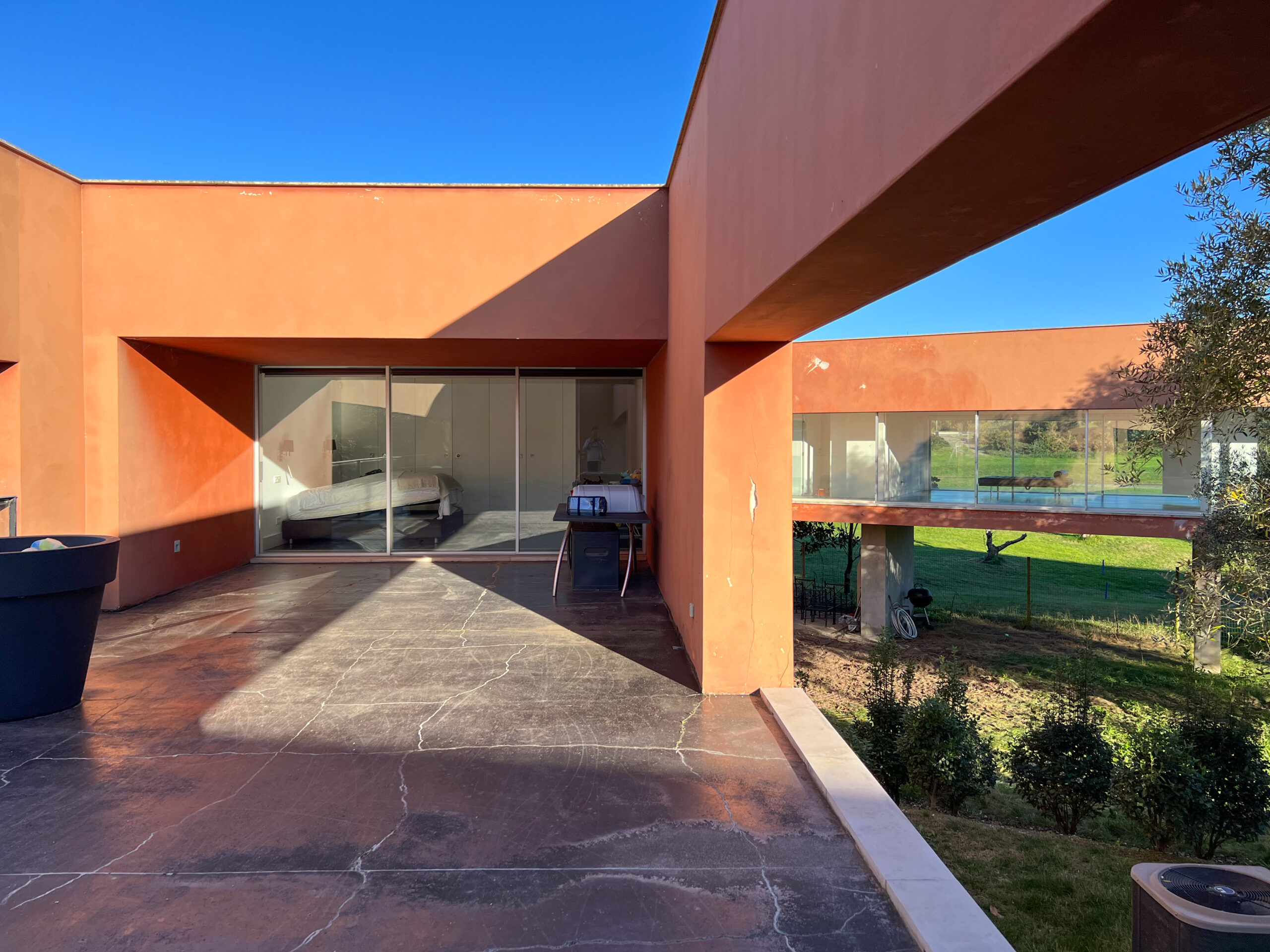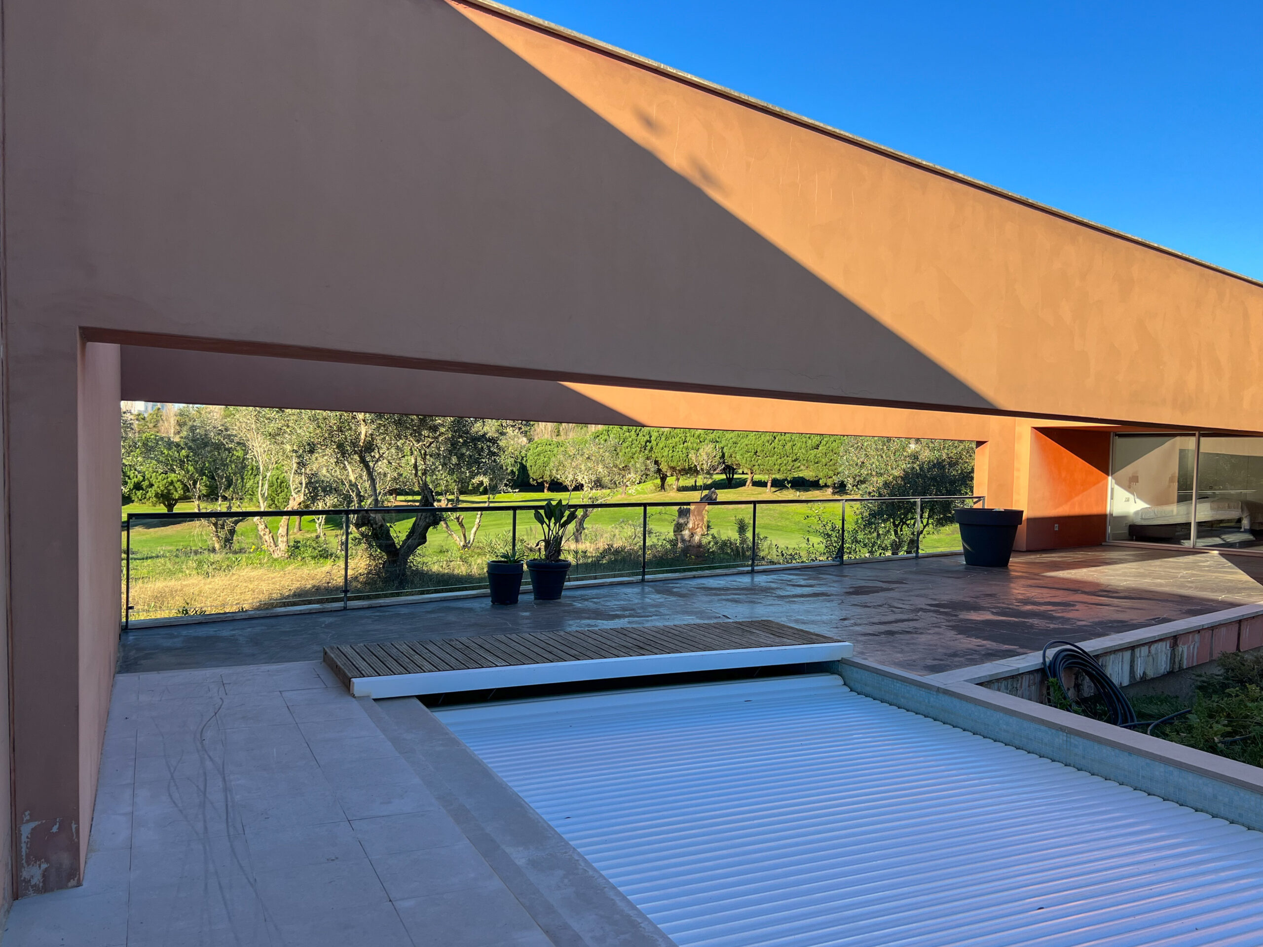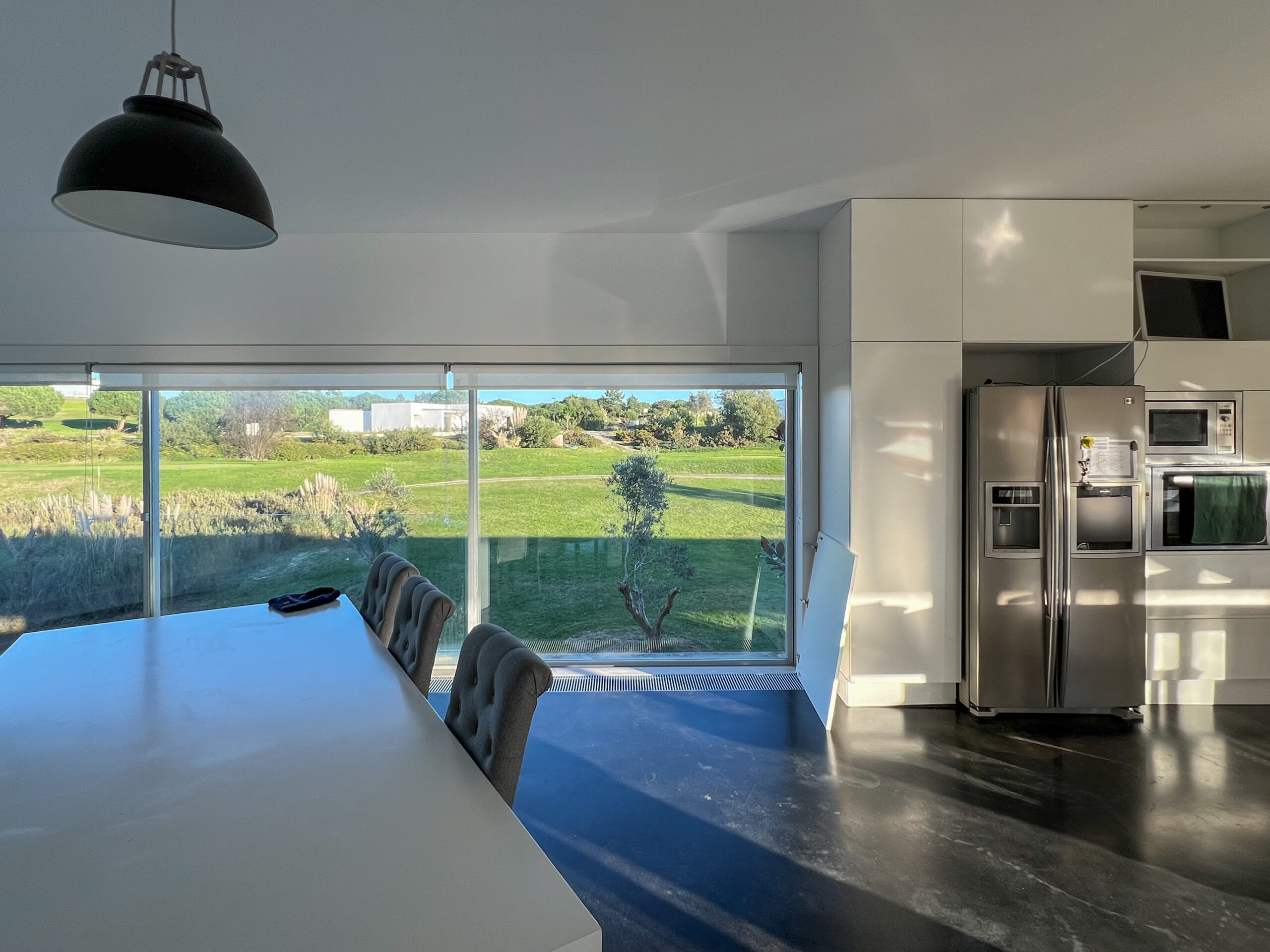 Originally envisioned in white, these villas instead became known for their striking red façades, a defining feature that gives them a strong architectural presence. Positioned along the golf course, overlooking holes 12 and 13, the houses blend harmoniously with centuries-old olive trees and the surrounding terrain. Unlike conventional layouts that place dwellings at the center of plots, Carrilho da Graça positioned his houses along the periphery, allowing for expansive courtyards that serve as the heart of each home. This design ensures privacy while fostering a sense of openness and connection to nature.