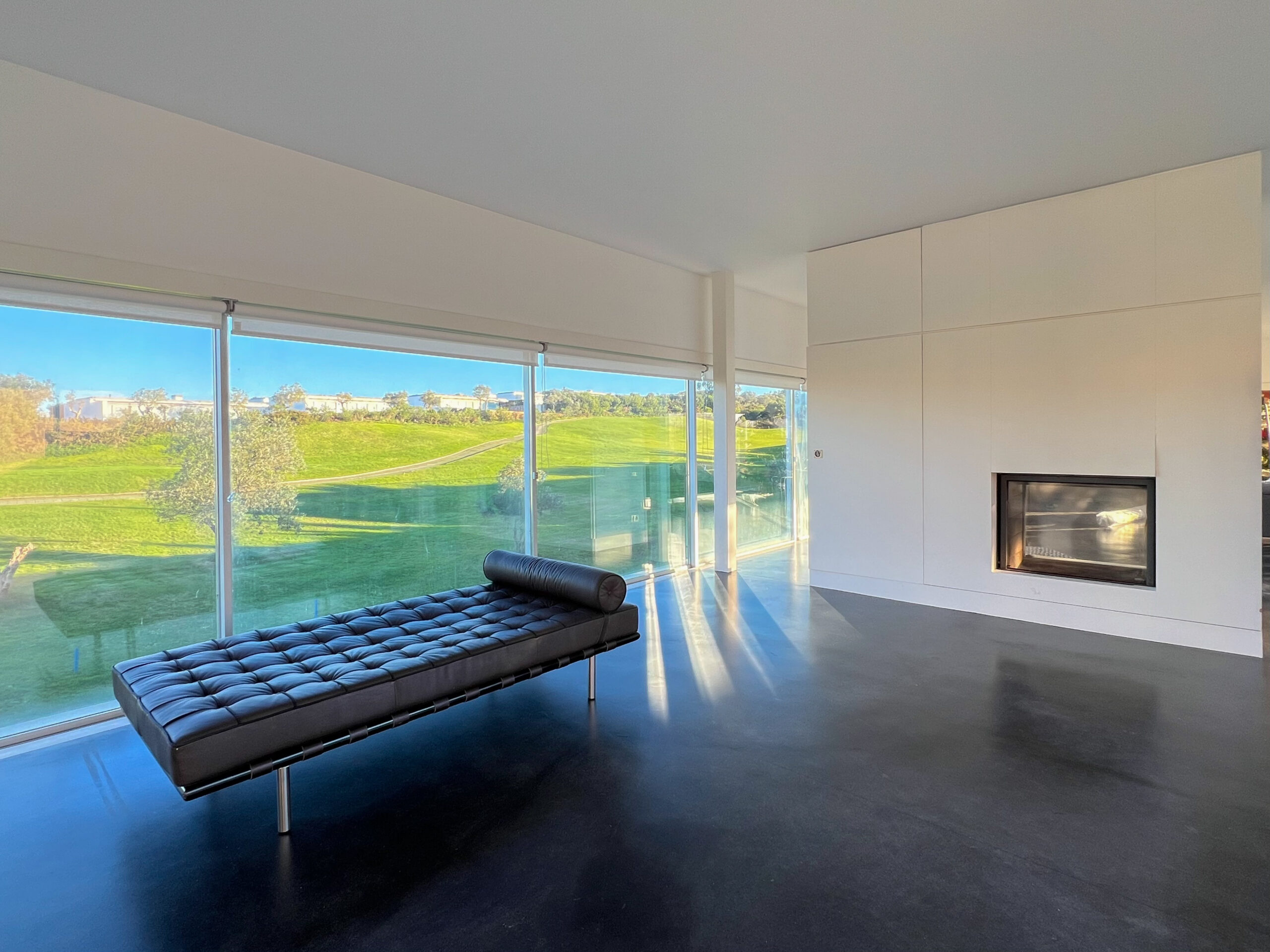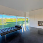 The architectural vision emphasizes strict horizontality, with the houses appearing as elegant reference planes that follow the natural contours of the land. Some villas extend like bridges, allowing visitors to see underneath the elevated living spaces, reinforcing the seamless indoor-outdoor experience. High ceilings and tall doors enhance the sense of space and light, contributing to the minimalist yet sophisticated aesthetic. Notably, the absence of dividing walls or hedges allows the architecture itself to define boundaries, further integrating the homes into the landscape.