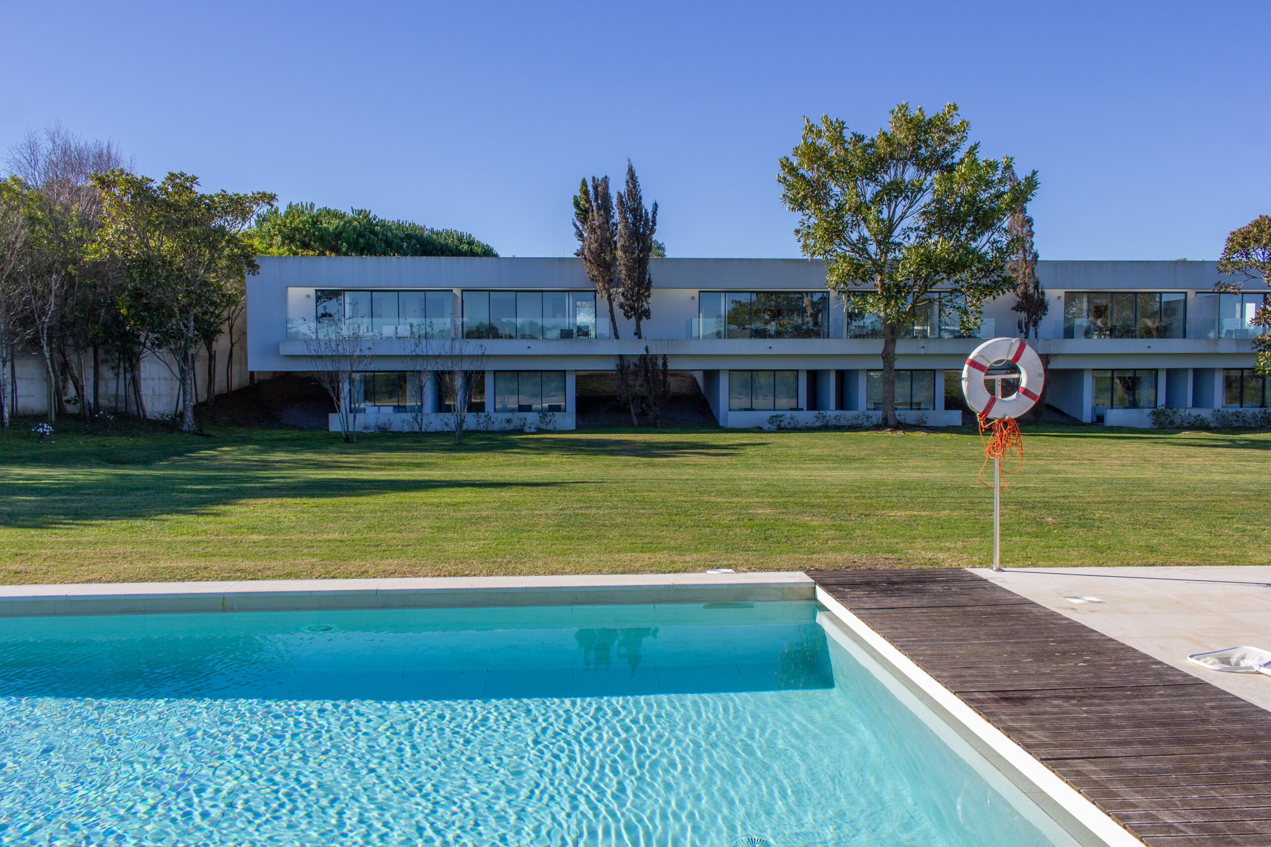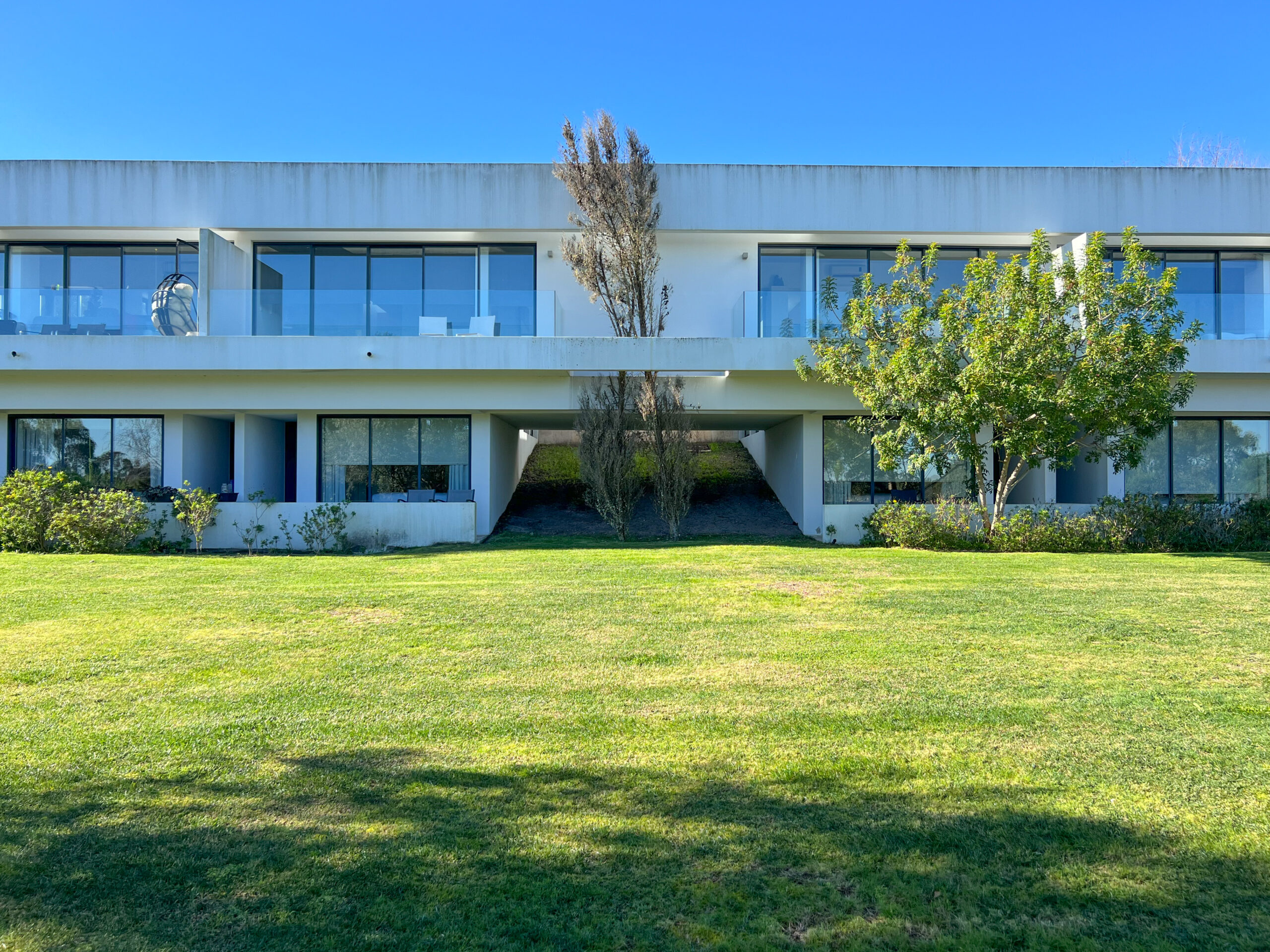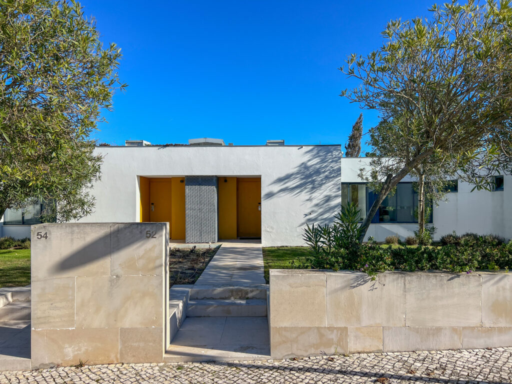 Designed by Madalena Cardoso de Menezes and Francisco Teixeira Bastos, this project consists of 18 one-bedroom duplex townhouses, located on Plot 153 along Caminho do Ferro and Caminho de Casa, within the Bom Sucesso Design Resort, Leisure & Golf. Built between 2008 and 2009, these homes are divided into two rows (A and B), positioned along the western side of streets A and C2, overlooking the eastern slope of the Quinta do Bom Sucesso golf course valley.
