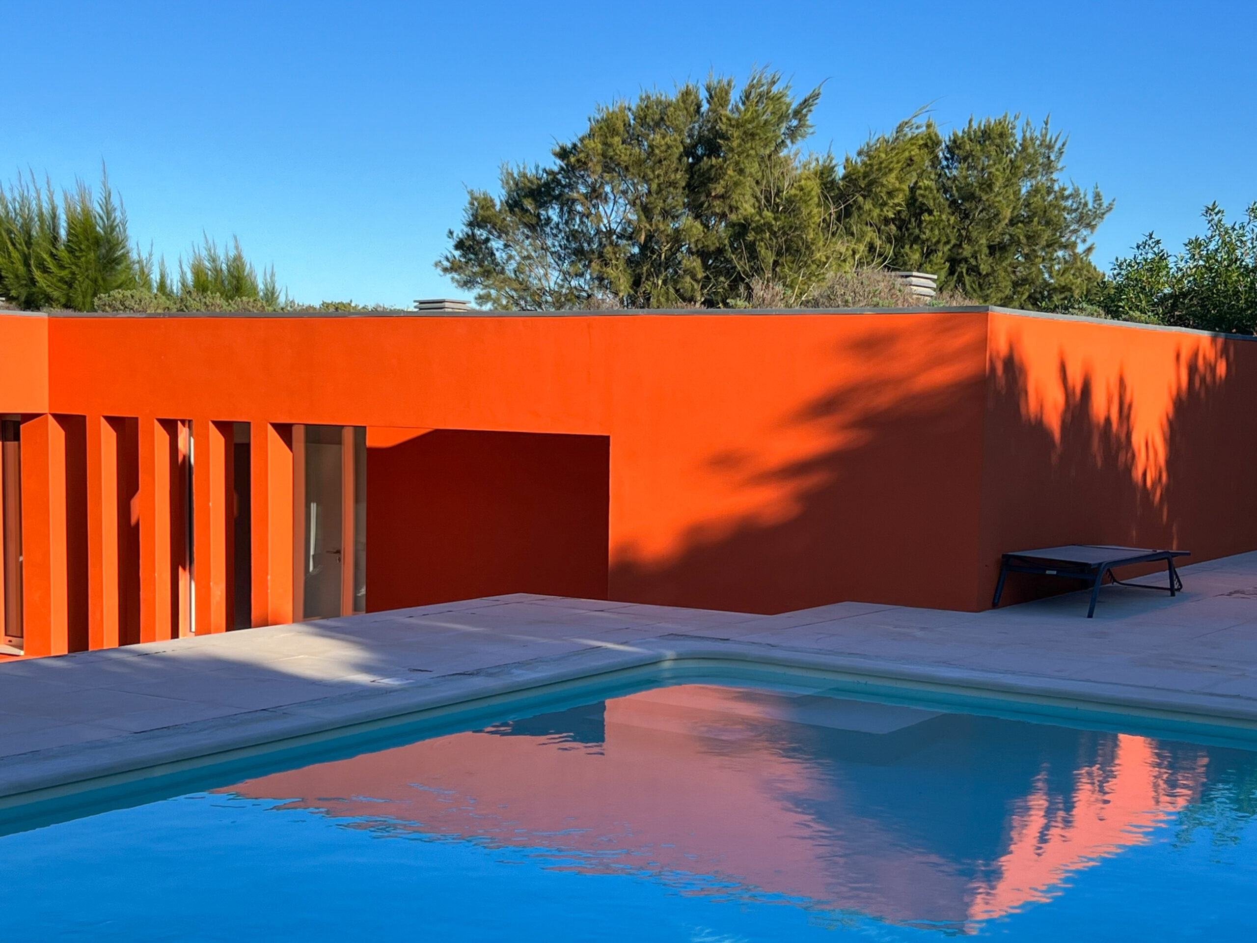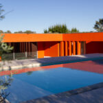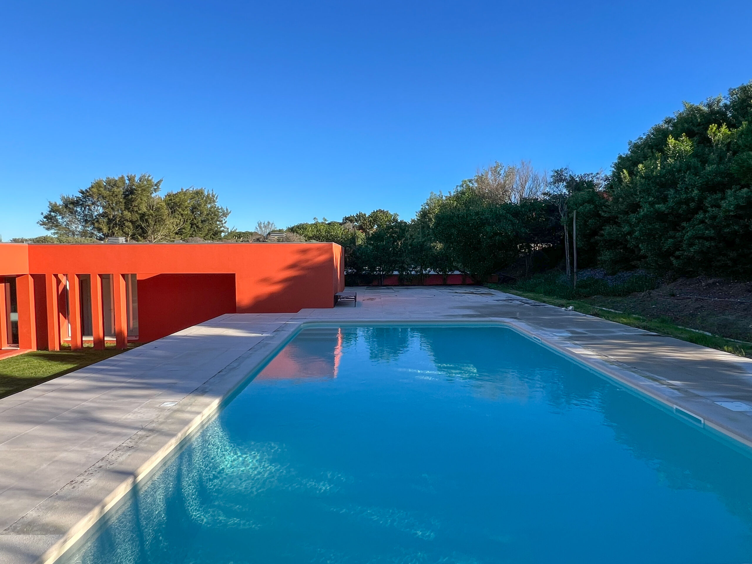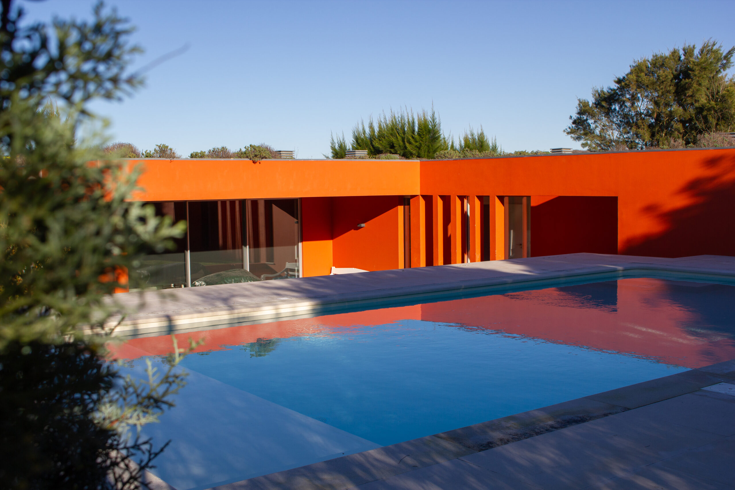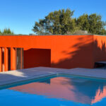 The bedroom wing is elevated 72.5cm above the rest of the house due to the natural slope of the terrain. Arranged along the eastern façade, the bedrooms are connected by a central hallway, each with its own bathroom and small private terrace. This section, set three meters from the eastern boundary, is partially embedded into the terrain at its highest point. The master suite is positioned at the southern end, near the pool terrace, yet remains discreetly separated, with its openings facing east for added privacy.