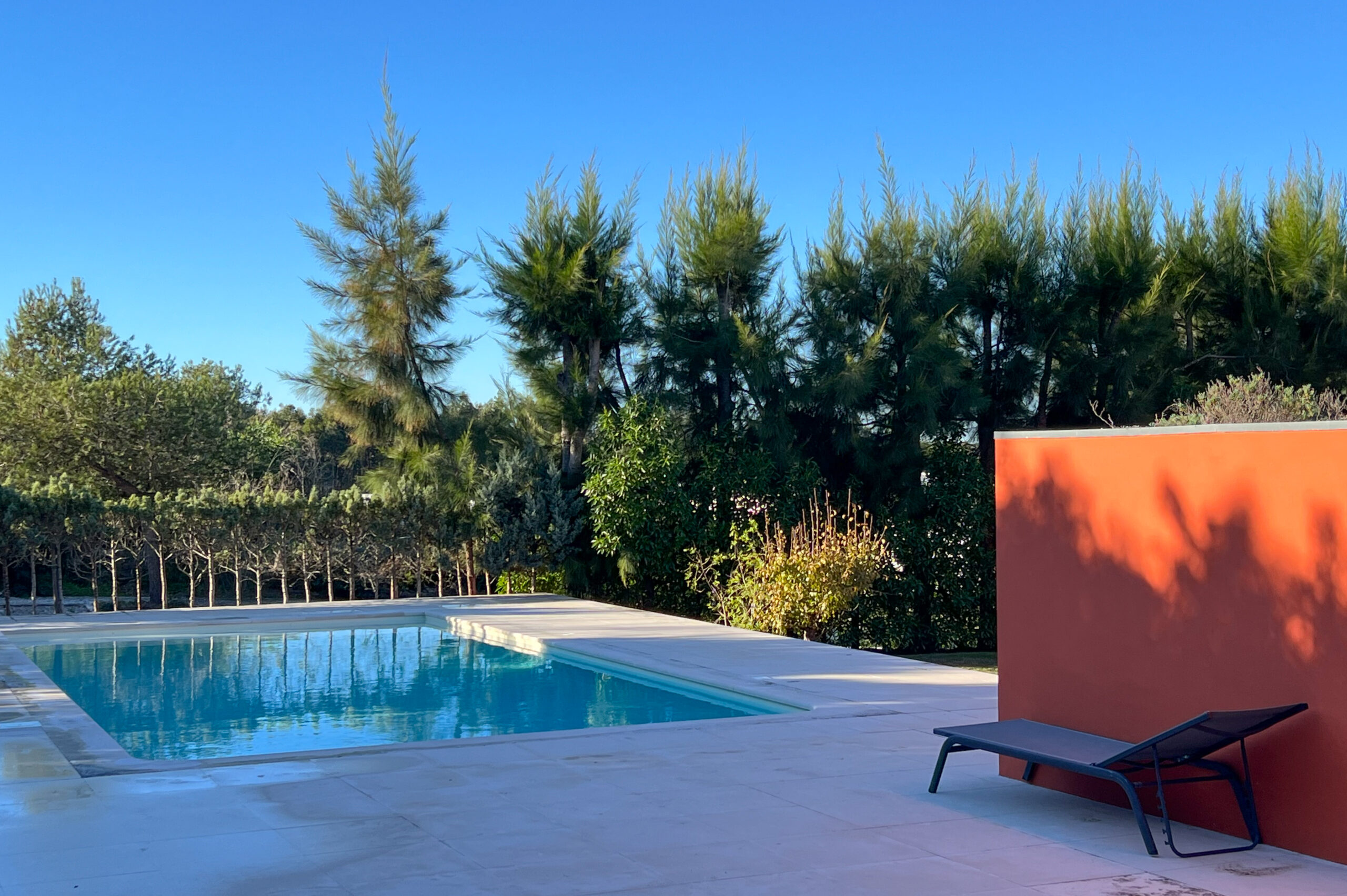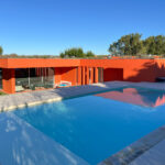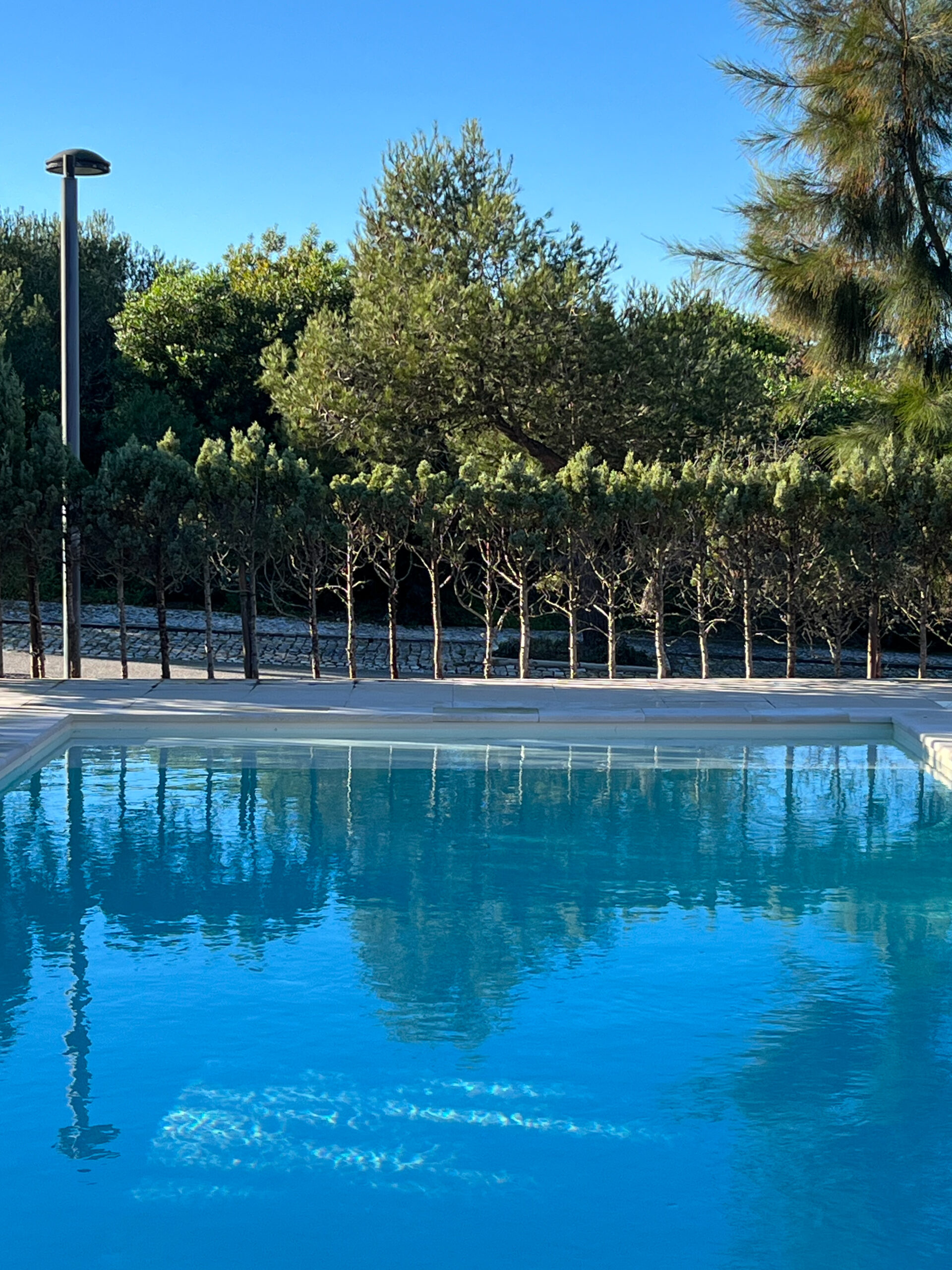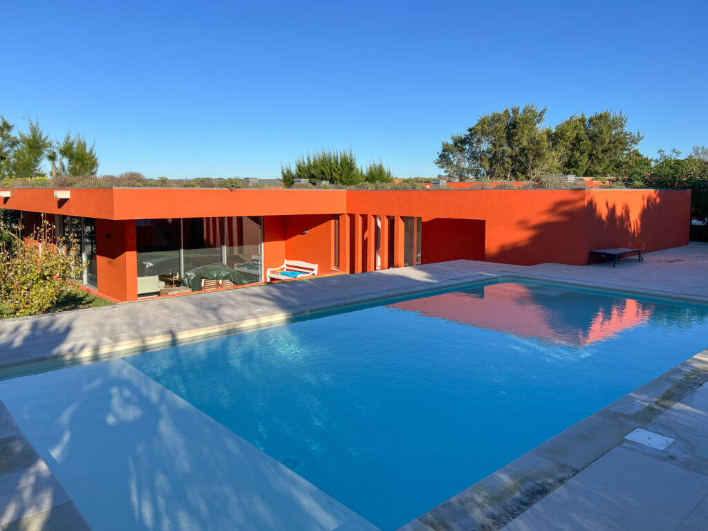 The bedroom wing is elevated 72.5cm above the rest of the house due to the natural slope of the terrain. Arranged along the eastern façade, the bedrooms are connected by a central hallway, each with its own bathroom and small private terrace. This section, set three meters from the eastern boundary, is partially embedded into the terrain at its highest point. The master suite is positioned at the southern end, near the pool terrace, yet remains discreetly separated, with its openings facing east for added privacy.